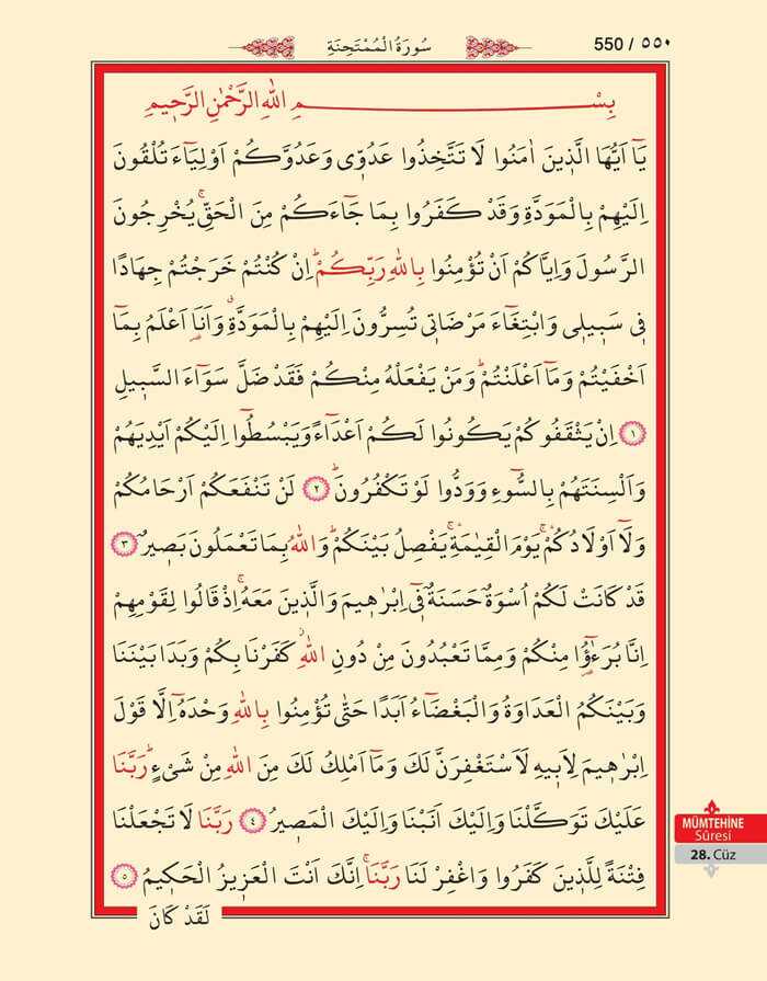5- “Rabbimiz! Bizi, inkâr edenler için fitne konusu kılma, bizi bağışla! Ey Rabbimiz! Çünkü Aziz, Hakîm olan yalnız sen varsın.”