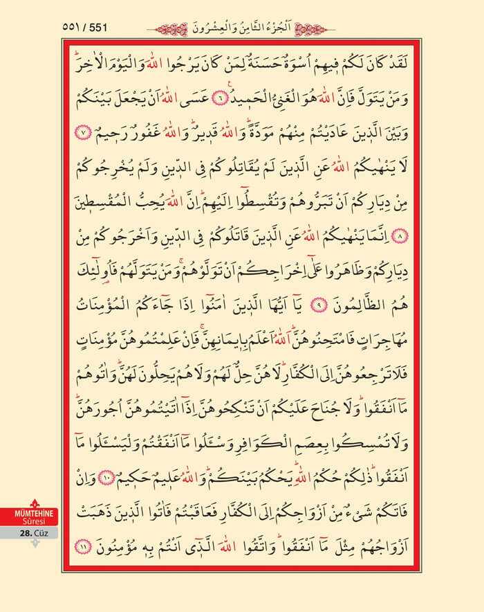 8- Sizinle din hususunda savaşmamış, sizi yurtlarınızdan çıkarmamış olanlara iyilik yapmanızı ve onlara adaletli davranmanızı Allah size yasaklamaz. Çünkü Allah, adaletli davrananları sever.